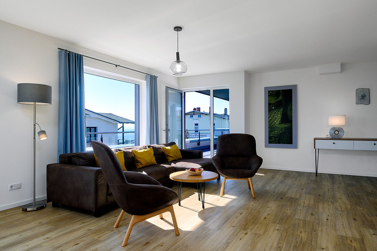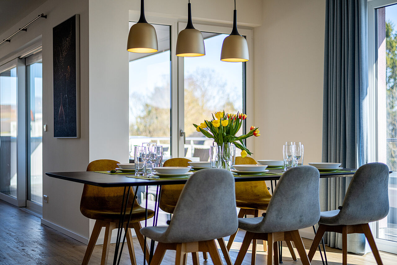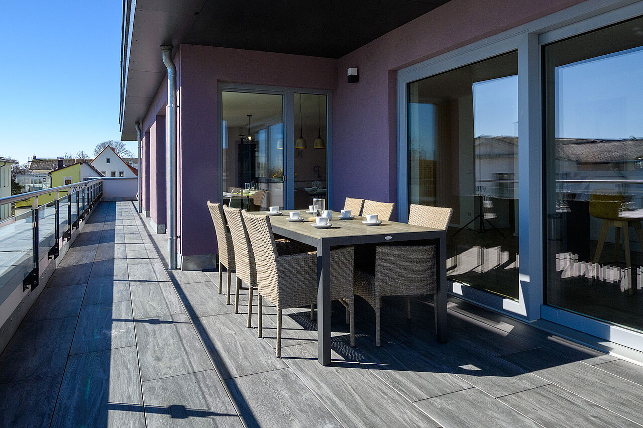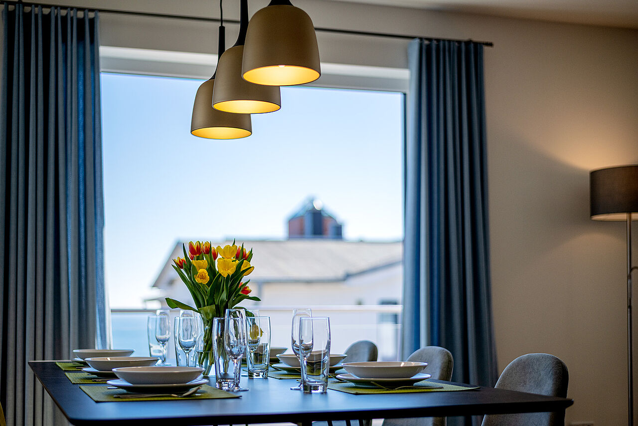 Die Küche verfügt über alles was Sie benötigen wie Backofen, Kühlschrank mit Eisfach, usw. Bettwäsche & Handtücher sowie Geschirrtücher sind bei Ihrer Anreise vorhanden. Darüber hinaus gibt es einen Wohnraum mit großer Küche, Loungebereich und Esstisch und eine Süd-DachTerrasse mit Panorama Ostseeblick.