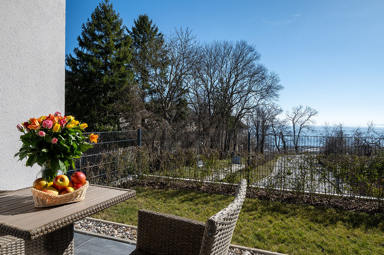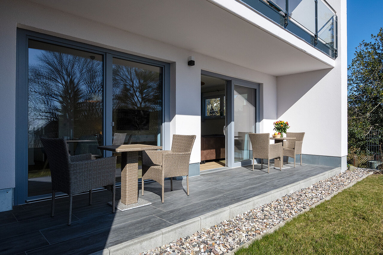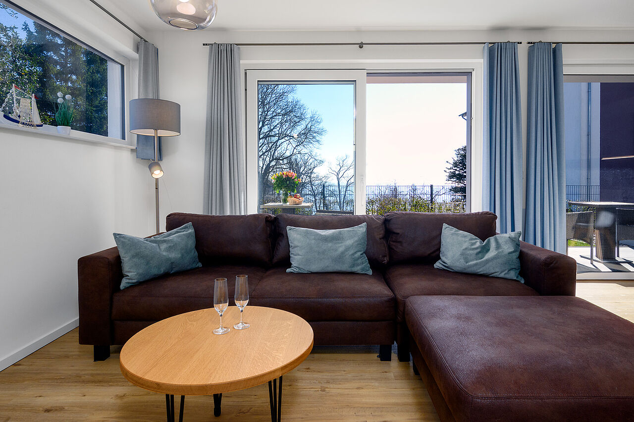 Darüber hinaus gibt es einen hellen Wohnraum mit Küche, Loungebereich und Esstisch sowie einem großen Süd-Balkon bzw. Terrasse, um die Ostseeluft zu genießen. Gerne stellen wir Ihnen ein Kinderbett und einen Hochstuhl zur Verfügung. Der Zugang zur Wohnung erfolgt per kontaktlosem Selbst-Check-In. Im Treppenhaus befindet sich zudem ein Aufzug, über den Sie die Wohnungen in den oberen Stockwerken erreichen.