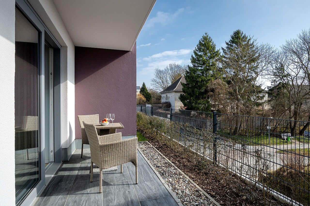 Der Zugang zur Wohnung erfolgt per kontaktloser Selbst-Check-In. Im Treppenhaus befindet sich zudem ein Aufzug, über den Sie die Wohnungen in den oberen Stockwerken erreichen.
